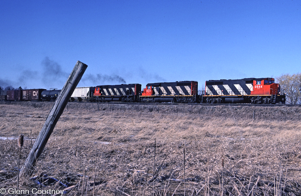 CN NF110 No. 908 sits in storage in Clarenville, NF on July 11, 1982. At this point in time all of CN’s NF110s (Nos. 900 – 908) were in storage in Clarenville. Glenn Courtney photo.