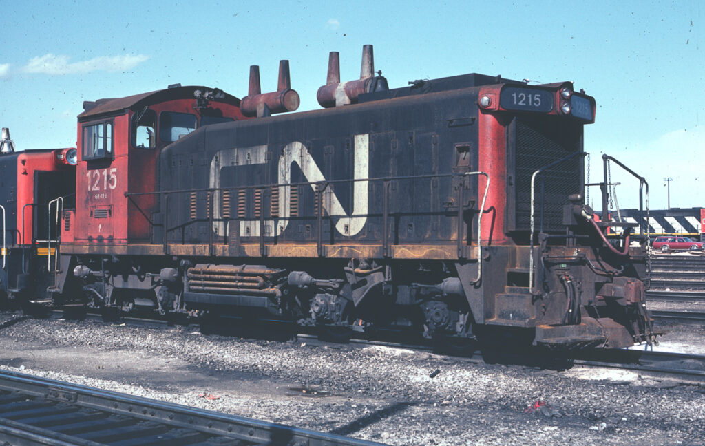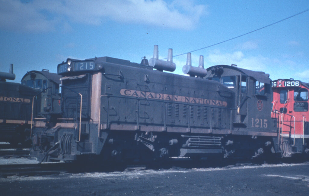 CN GMD SW1200RS No. 1215 CN 1215 Brantford ON March 22 1964 K. Hutchison Glenn Courtney collection CN 1215 Sarnia ON Dec 1972 Unknown CN 1215 Toronto ON Apr 2 1981 Ron Lipsett Glenn Courtney collection