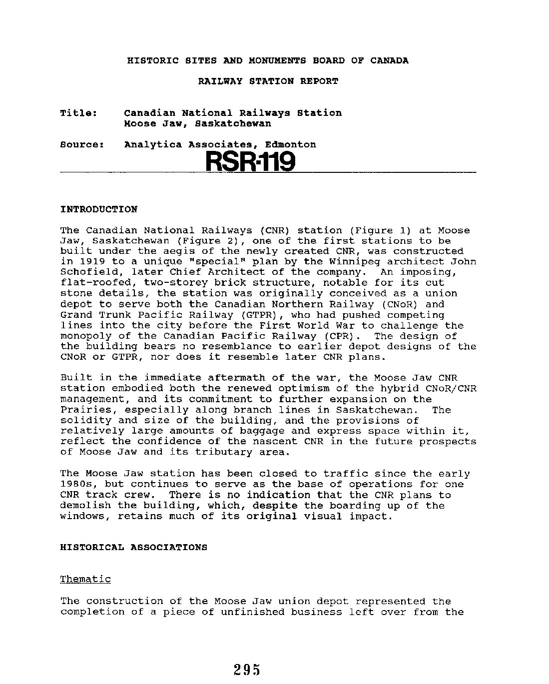 Moose Jaw Saskatchewan Station Report diagrams, pictures 33 pages
