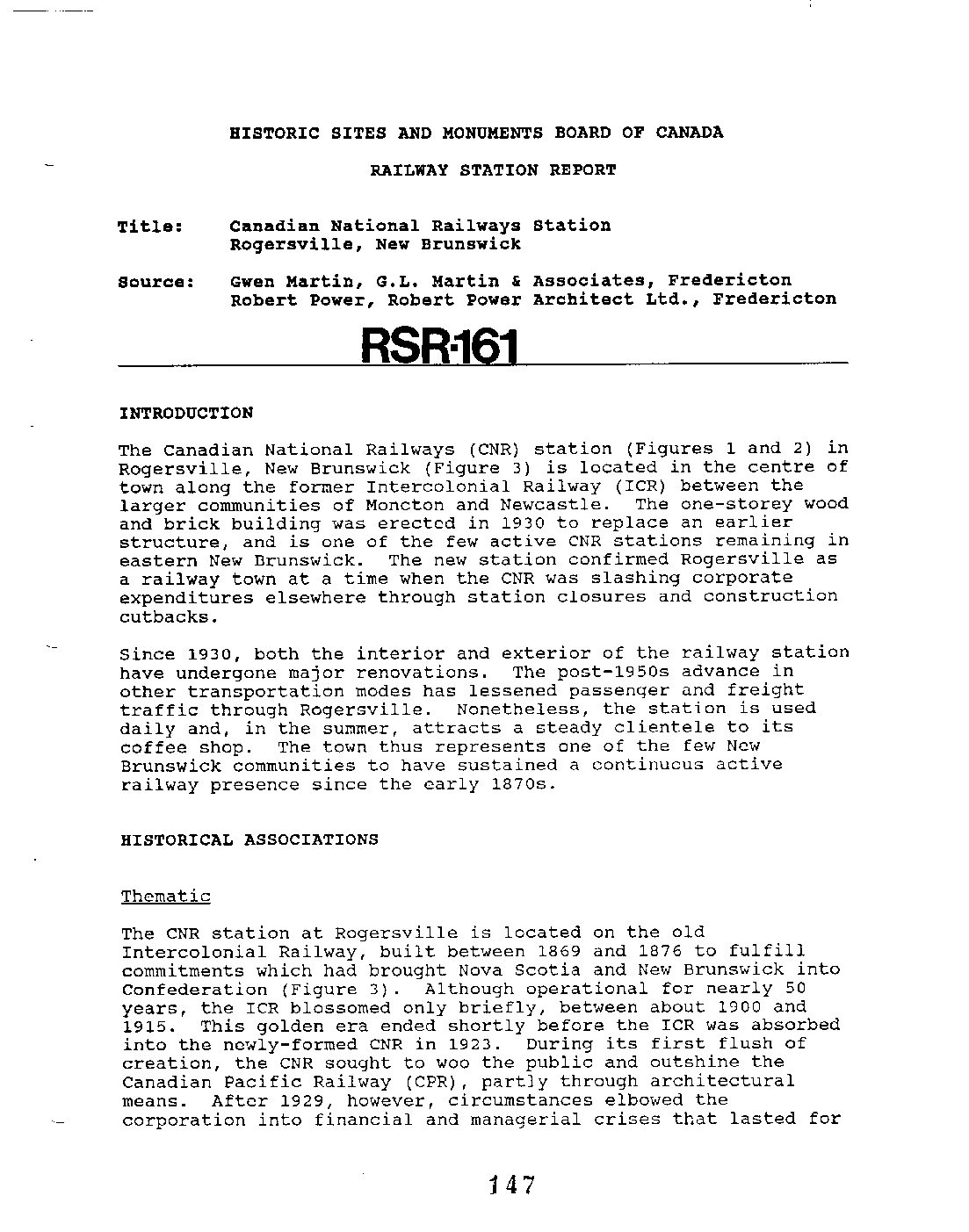 Rogersville New Brunswick Station Report diagrams, pictures 34 pages