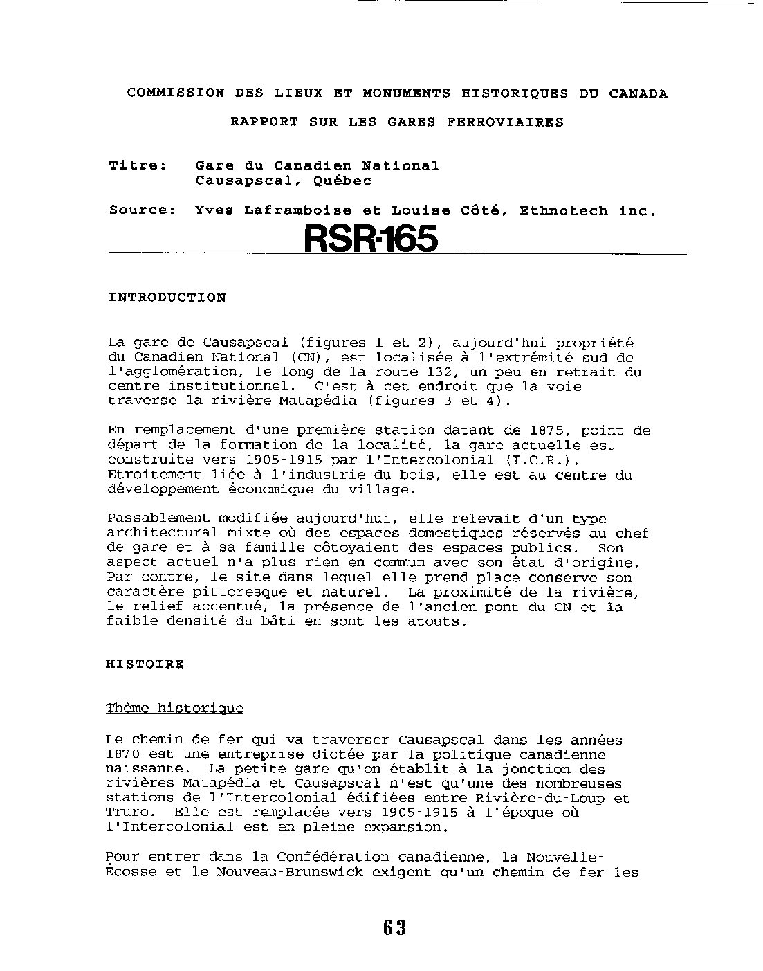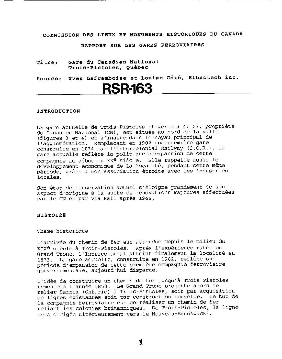 Trois-Pistoles Quebec Station Report diagrams,. pictures 32 pages