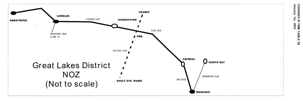 | Ruel | Capreol, Ontario | Hornepayne, Ontario | 296.2 miles | CTC | Ruel |